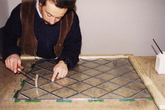 Tür als Bleiverglasung Rautenverglasung